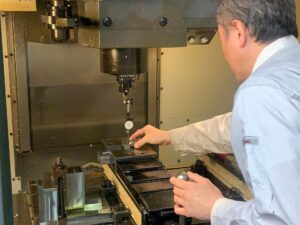 しかし、当社ではその性能に甘んじることなく、始業前の主軸暖機運転の徹底や、機械のコンディションを把握する定期的な機上測定(タッチプローブによる原点確認など)を欠かしません。
